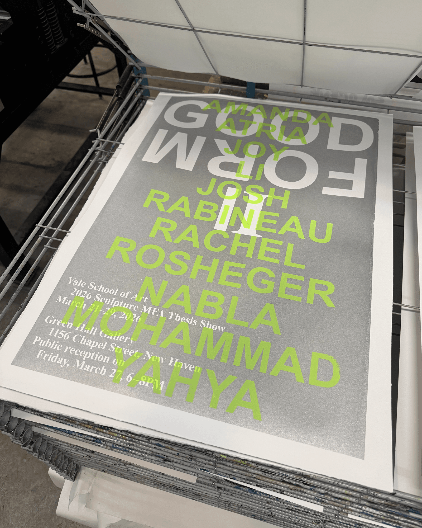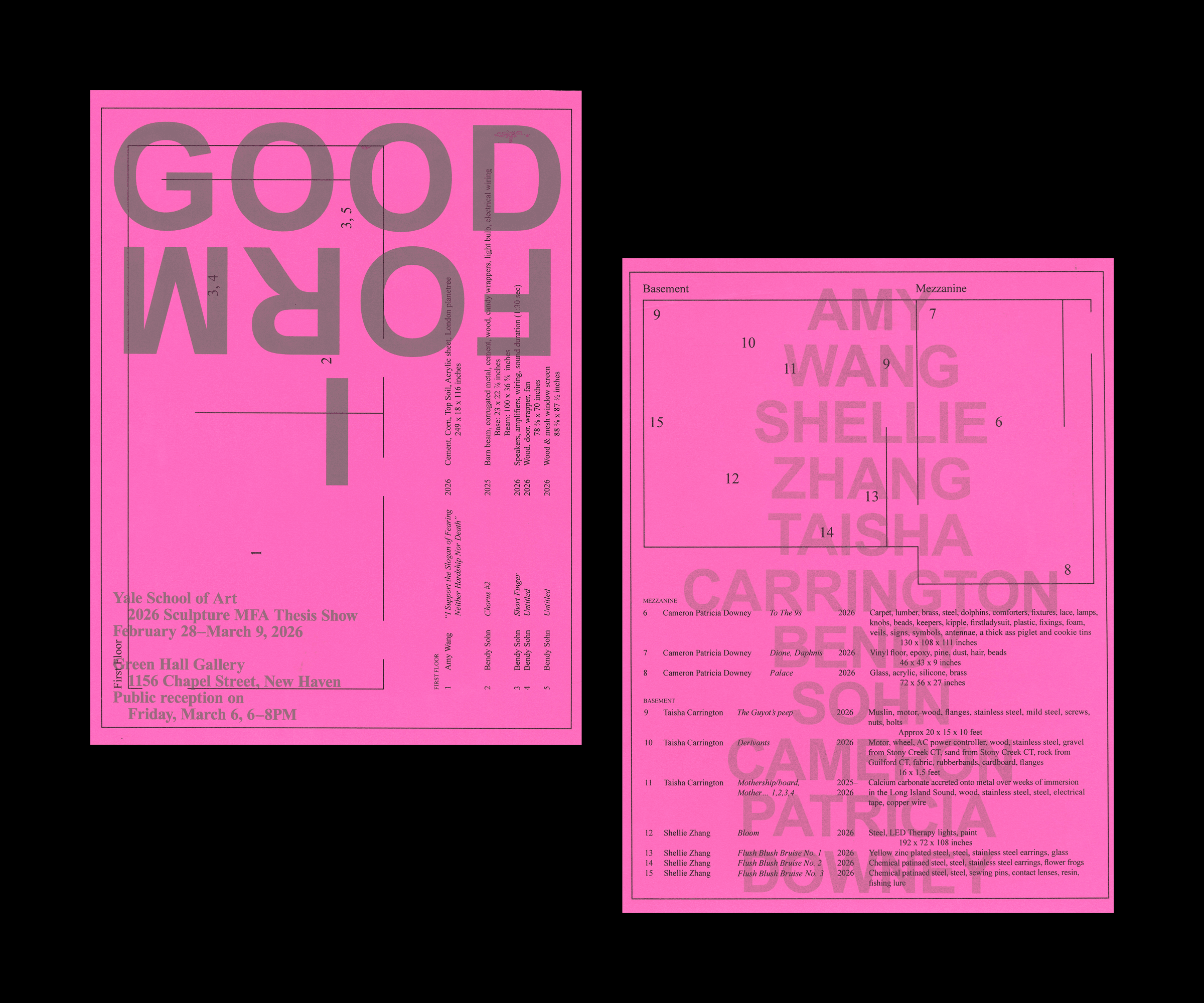 Exhibition graphics, poster and pamphlets for the 2024 Yale First-Year MFA Exhibition (designed in collaboration with Camille Gwise).